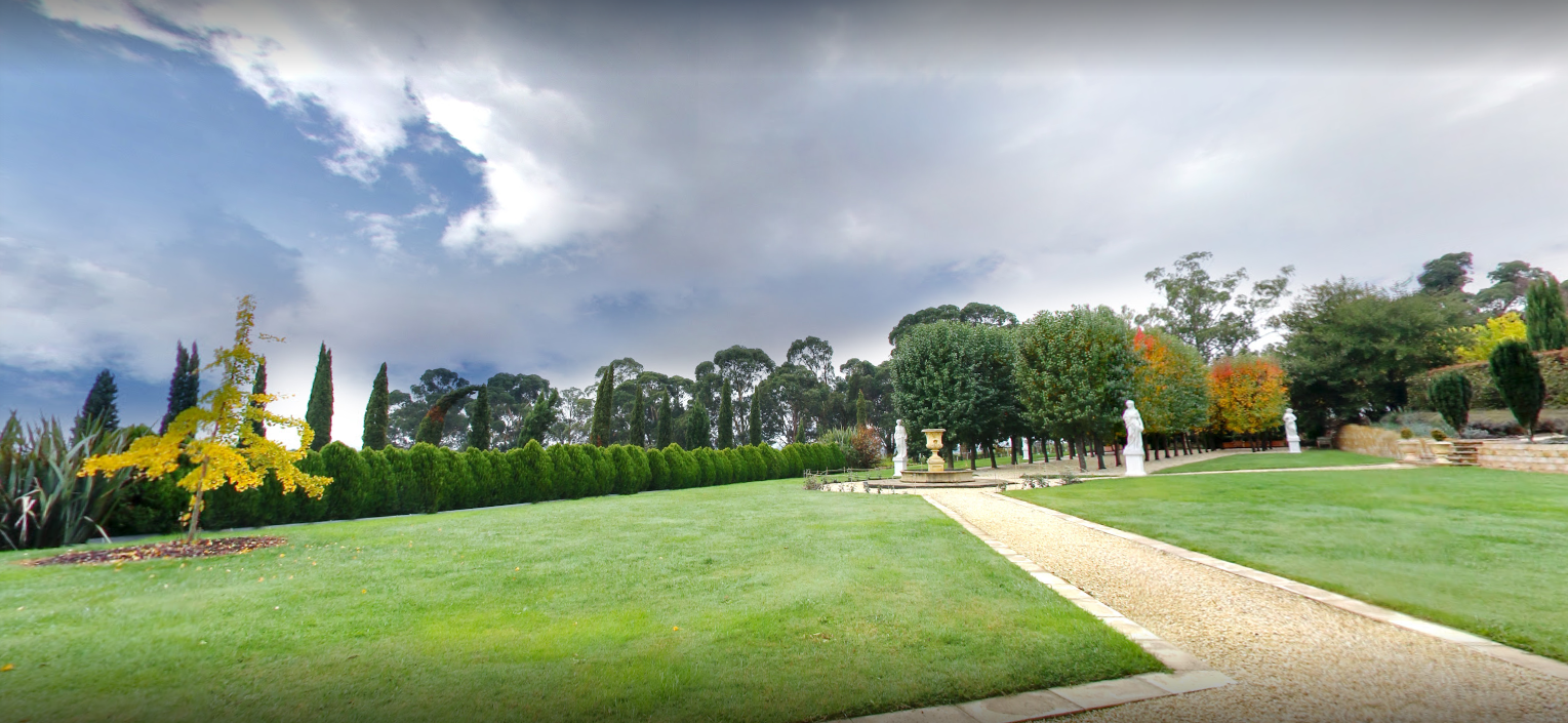 The theme of the gardens is a mixture of formality and symmetry contrasted with more free-flowing plantings. Statuary and urns as well as seats and the pear walk and Japanese garden form focal points within the gardens and the surrounding farmlands, orchards and vineyards give way to the ever-changing colours of the surrounding mountains.